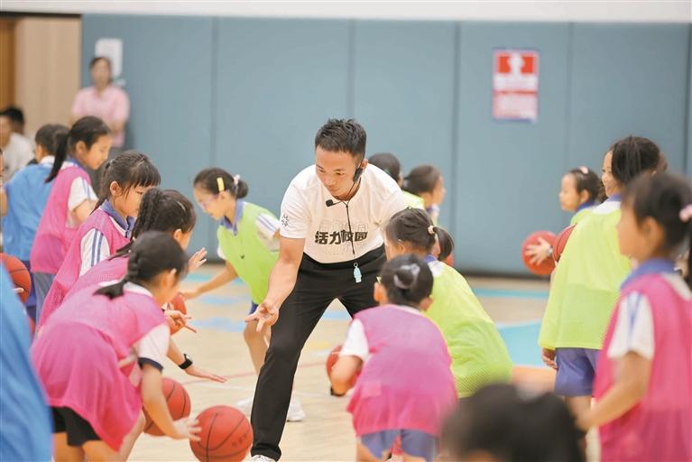 如何让更多孩子享受到篮球?2020年后,陈智开始构建“四轮驱动”式校园篮球竞赛体系,提出“人人有参与,人人有项目”的目标。他向学校申请,将篮球课纳入每班每周的必修课,打造了全员参与的校园篮球文化节。