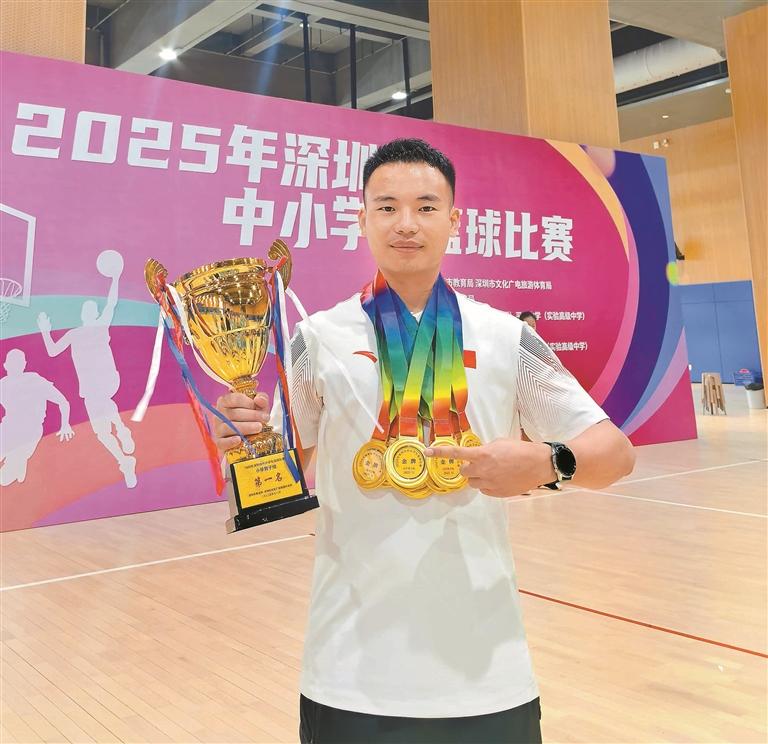 近日,2025年深圳市中小学生篮球比赛落下帷幕,光明区马田小学“千里马”篮球队成功加冕小学男子组冠军,拿下队史第11冠。从第一冠开始,光明区马田小学体育中心主任陈智就是这支队伍的“主心骨”,他带领孩子们不断创造新纪录,也在不断书写自己的教育故事。虽然才9年教龄,他已经拿下了全国教育教学论文大赛小学组一等奖、广东省体育教师教学能力大赛一等奖等多个专业奖项,并于今年9月获评“南粤优秀教师”。