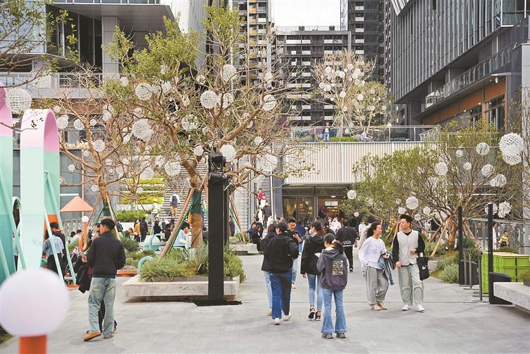 “商场设计很有都市气质,尤其是这个屋顶花园,适合约朋友来散个步、发发呆。”在屋顶花园晒太阳的文小姐告诉记者,超5000平方米的屋顶花园是她最喜欢的地方,现阶段正是粉花风铃木盛开的季节,氛围感很好。