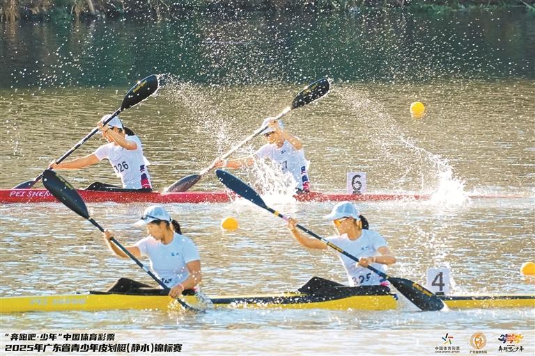 比赛中,选手奋力划桨,水花飞溅。