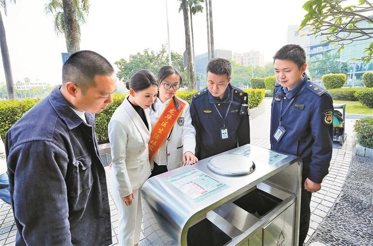 “可回收物桶里混入了用过的纸巾,按照《深圳市生活垃圾分类管理条例》,需立即整改。”在龙华文化广场垃圾分类点,执法人员指着桶内混投垃圾,现场向管理方指出问题。与以往“背对公众”的执法不同,此次直播全程公开——从检查设施设置、标识规范,到核对清运台账,每个环节都清晰呈现在镜头前。执法人员不是简单处罚,而是当场讲解条例相关规定,让监督与教育同步进行。整个执法过程如同一堂“现场公开课”,通过镜头的客观记录,将垃圾分类的常见误区、正确做法及法律依据完整呈现。