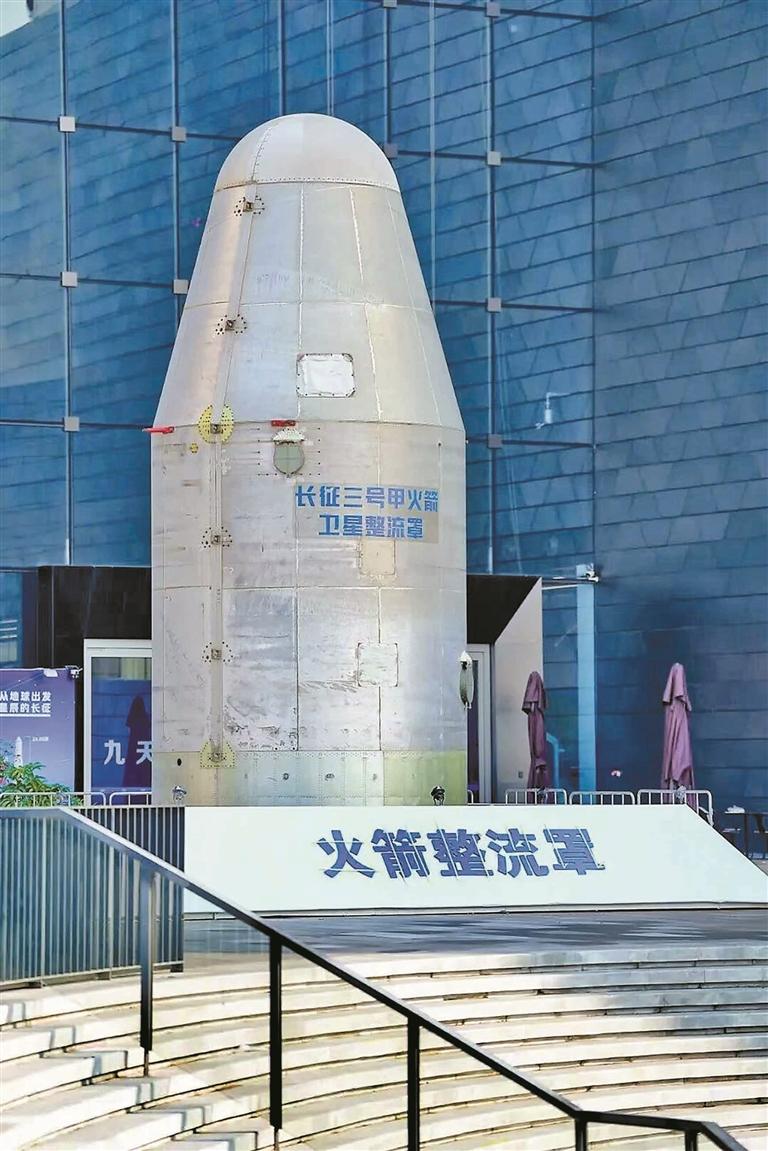 另一件明星展品—长征三号甲火箭卫星整流罩,同样吸引着观众目光。作为我国高轨道卫星发射的主力干将,长征三号甲火箭系列曾成功托举嫦娥一号月球环绕器、北斗导航卫星等重要载荷进入太空,而此次展出的整流罩,正是保护卫星穿越大气层的“太空铠甲”,其精密的结构设计与耐高温材质,直观呈现了我国航天工程的制造水平。
