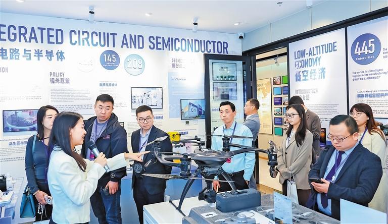 嘉宾们首站来到被誉为龙华发展“立体百科全书”的龙华区未来城市展览馆,通过时光长廊、数字展厅、产业图谱等多种形式,全方位了解龙华的建区历程、“数字龙华”建设成果、重点产业集群布局以及“客家之邑、现代之城”的城市魅力。在智能制造场景展示区,不少企业代表驻足交流,一位科技企业代表坦言:“展馆里展示的技术布局与我们的业务高度契合,让我们看到了双方广阔的合作空间,更坚定了我们投资龙华的信心。”