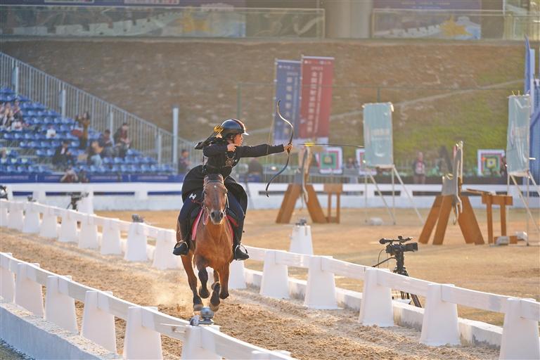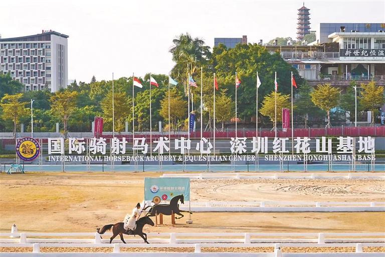 全国骑射巡回赛总决赛暨环球骑射大师赛在光明区红花山体育中心举办。