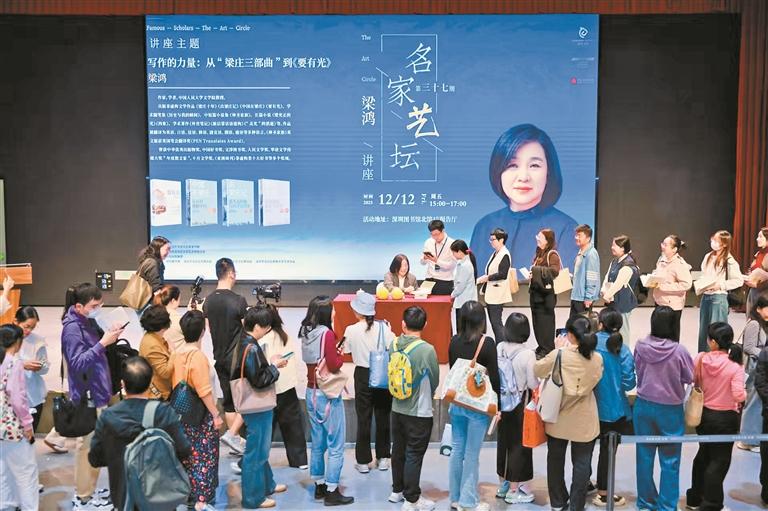 12月12日下午,由龙华区委宣传部指导、区文联主办的第37期“名家艺坛”活动在深圳图书馆北馆举行。活动特邀著名作家、学者、中国人民大学文学院教授梁鸿,以“写作的力量:从‘梁庄三部曲’到《要有光》”为主题进行分享。区委常委、宣传部部长黄立敏出席活动并致辞。活动吸引了四百余名文学爱好者、文艺创作者及高中教师参与,线上直播观看量达数十万人次。
