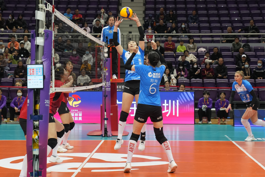 第二局,双方开局一度陷入胶着,比分交替上升。中段阶段,深圳队通过发球冲击和接应亚塞克的强攻逐渐拉开分差。队长陈馨彤在关键回合中通过扣球制造对手打手出界,比分来到20比16。局末阶段,深圳队在关键分把握上更为稳健,以25比21再胜一局。