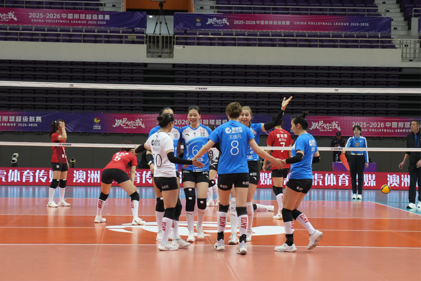 12月14日,2025—2026中国女子排球超级联赛常规赛B级首轮比赛在深圳市宝安体育馆举行。坐镇主场的广东深圳中塞澳洲虎女排以3比1战胜河北雪如意女排,迎来新赛季开门红。四局比分为25比15、25比21、23比25、25比14。