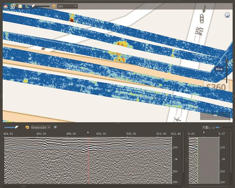华章检测公司融合人工智能与地下探测技术,构建“智能检测+AI分析”的技术保障体系。图为AI雷达数据图谱。