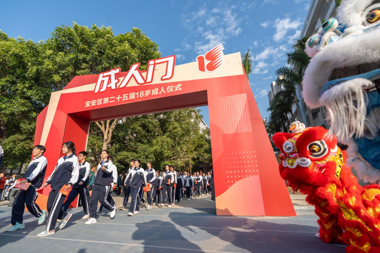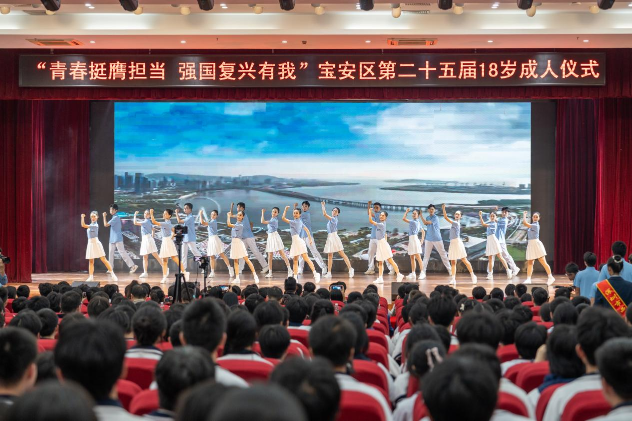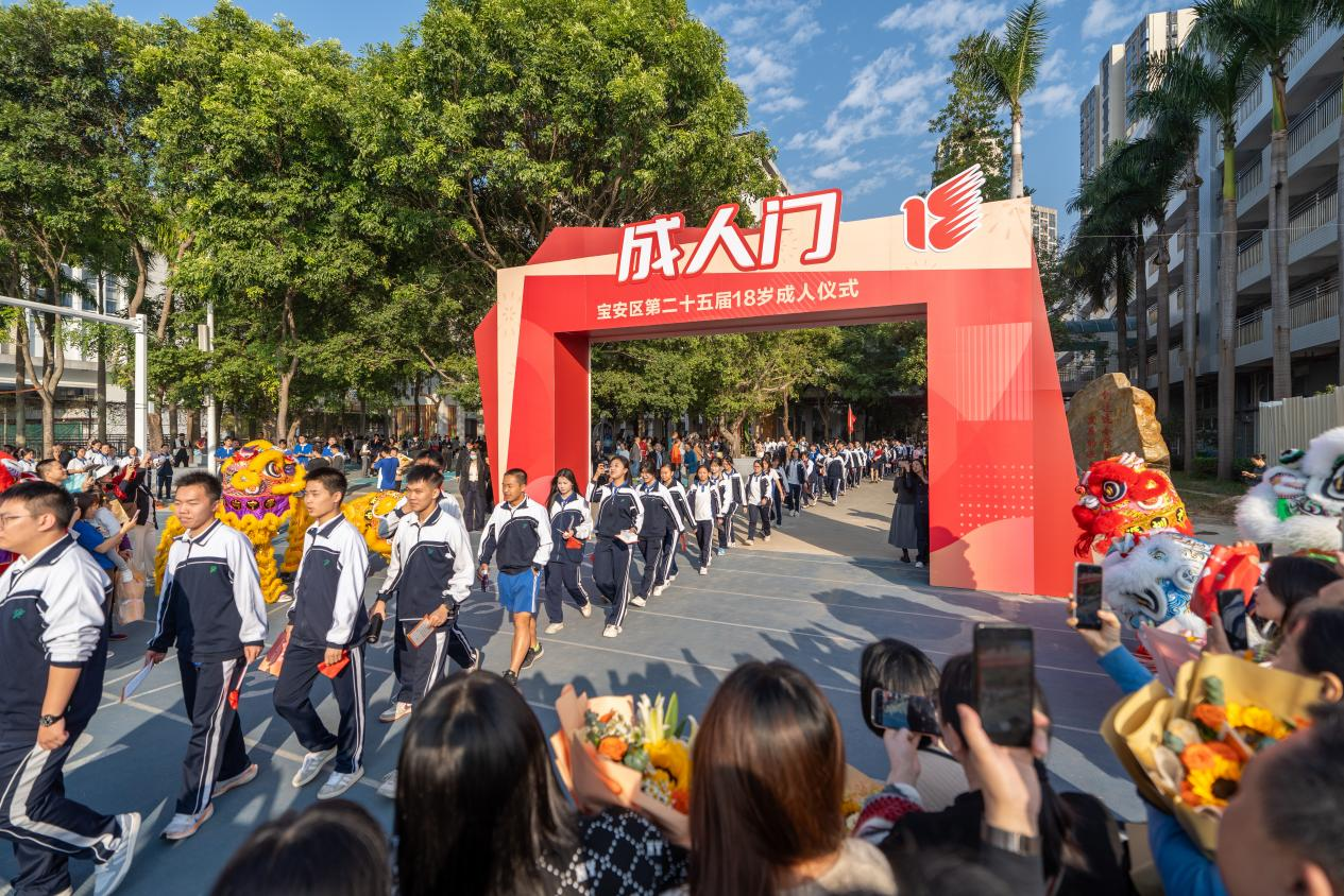 千人同宣誓,齐行成人礼。为深入学习宣传贯彻党的二十届四中全会精神,进一步加强全区适龄学生思想政治引领和价值引领,引导适龄青少年树立成人意识,增强爱国意识、公民意识、宪法和法律意识、责任意识、感恩意识,努力培养青年学生成为担当民族复兴大任的时代新人,12月18日,团区委、区教育局、区关工委、区文明办在前海未来教育集团西乡中学高中部联合举行“青春挺膺担当,强国复兴有我”宝安区第二十五届18岁成人仪式。