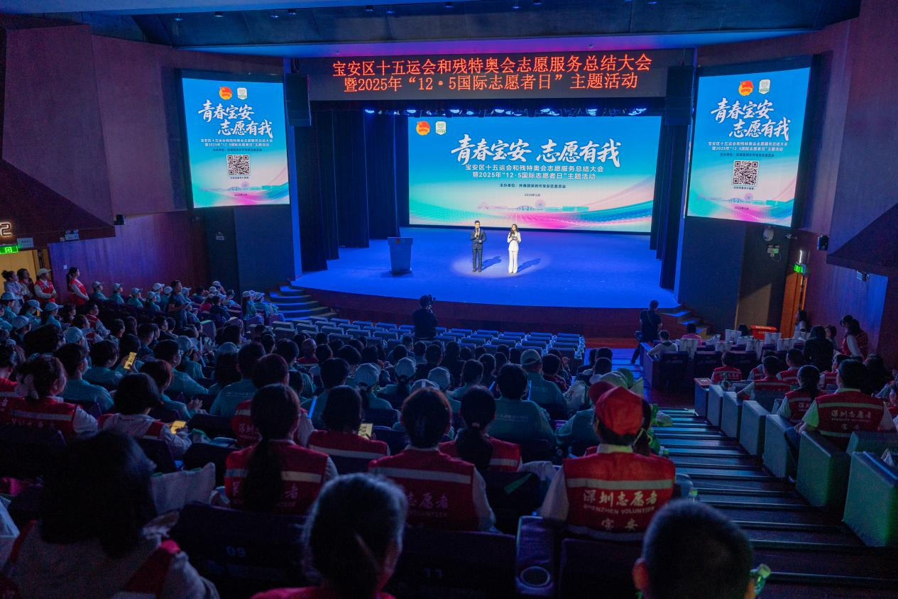 12月19日,宝安区十五运会和残特奥会志愿服务总结大会暨2025年“12·5国际志愿者日”主题活动在宝安青少年宫举行。活动旨在全面总结宝安区十五运会和残特奥会志愿服务成果与经验,激励在十五运会和残特奥会志愿服务工作中作出突出贡献的集体及个人,同时展示宝安志愿服务三十载薪火相传、接续奋斗的发展历程及丰硕成果,为未来宝安志愿服务事业的提质升级凝聚共识、锚定方向。