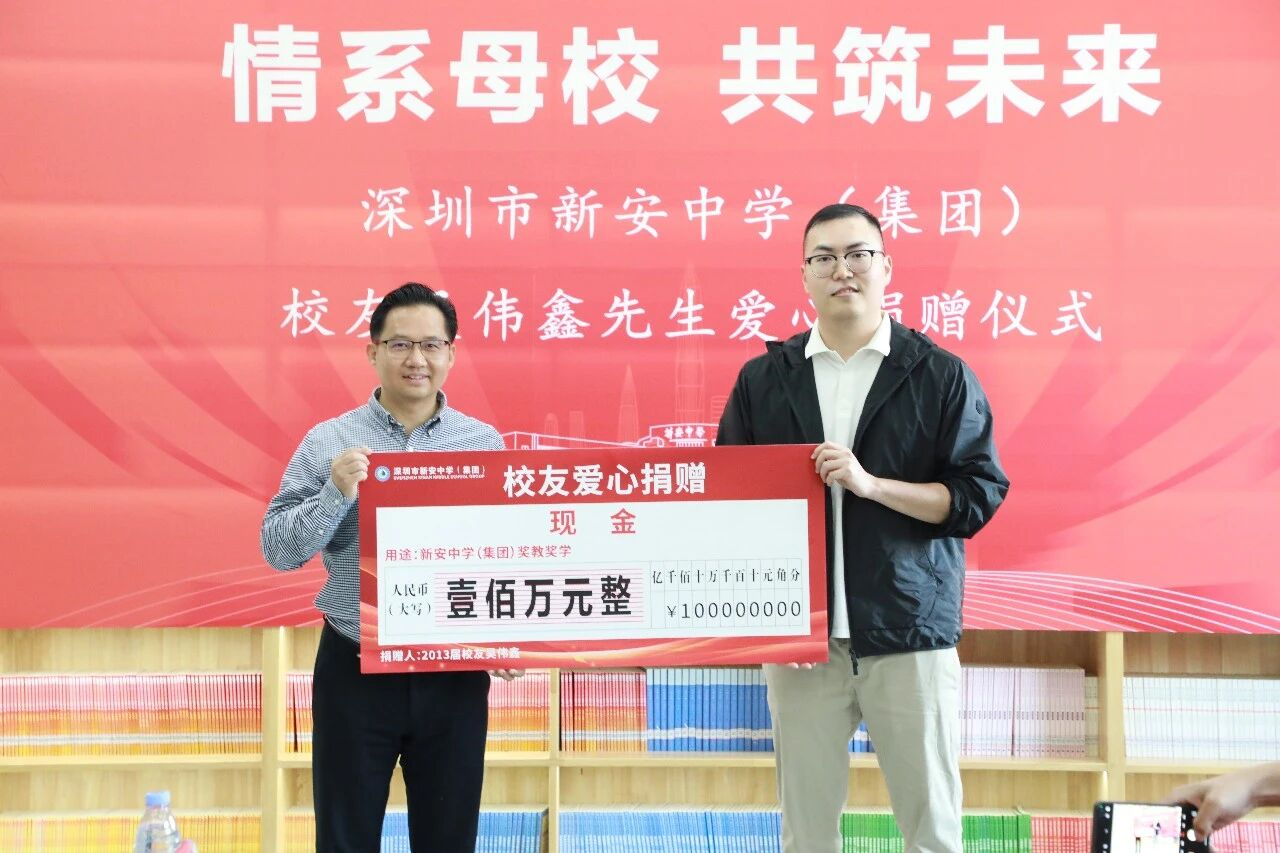 18日下午,爱心捐赠仪式在新安中学(集团)高中部举行。“校友吴伟鑫提前一天向我校索要了收款账号,5分钟不到,100万元捐资就已到账。”该校副校长郭丽丽介绍,“原本学校想邀请2个班的学生参与仪式共同见证,却被吴伟鑫婉拒。应他要求,捐赠仪式仅在小范围内举行。”
