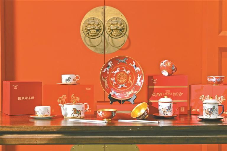 延续“抱着春碗看春晚”的团圆记忆,国瓷永丰源今年以“福禄寿喜财,金春碗里来”为核心意象,突破往年单一形态,推出涵盖金春碗、茶咖具等六款作品,构建起完整丰盛的新春生活场景。其中典藏款“马到成功·金春碗”堪称点睛之笔:采用企业独有的多层次高精度芯片级浮雕叠印技术,结合匠人手工精研,让奔马的力量感与肌理感立体呈现;内满金光、外展雄姿,碗底以高含量真金精饰,搭配非遗红釉彩与总台文创加持,成就“可砂纸打磨的硬核金春碗”,成为总台文创史上首款该类型作品。