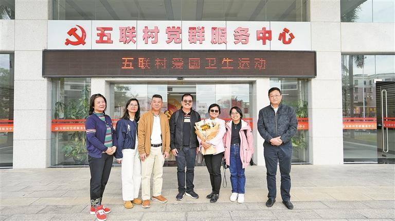 钟伟强一家在观澜侨联工作人员的陪同下回到东莞凤岗五联村。