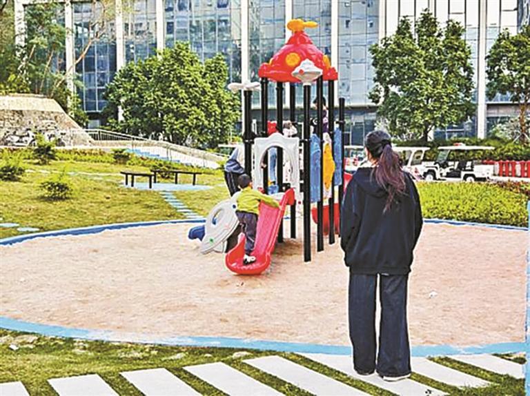 西乡街道共乐社区日前将九方广场后方的一块空地进行改造,为社区增添了一处孩童嬉戏、居民休闲的童趣乐园。