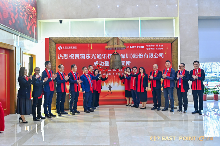 岁末资本市场好戏连台,宝安企业迎来上市“加速度”!继12月30日卧安机器人成功登陆港交所后,12月31日,宝安区本土培育的又一优质企业——蘅东光通讯技术(深圳)股份有限公司(股票代码:920045,以下简称“蘅东光”)在北京证券交易所正式挂牌上市。蘅东光本次发行价格为每股31.59元,市盈率14.99倍,上市当日开盘价报350元,涨幅高达1008%,上市当日市值超200亿元,成为北交所市值第三企业。