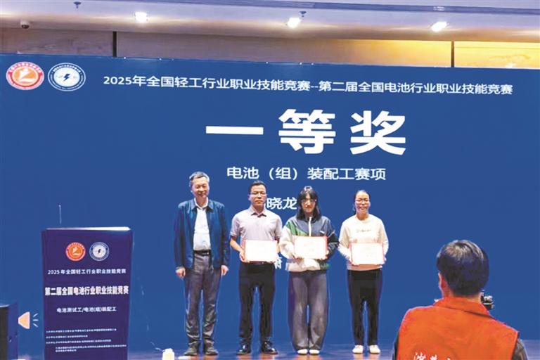 本届竞赛由中国轻工业联合会、中国电池工业协会、中国财贸轻纺烟草工会联合主办,聚焦电池测试工和电池(组)装配工两大关键赛项,从安全规范、工艺流程、质量控制、数据分析等方面进行综合能力考察。赖晓龙与来自全国五大赛区的183名优秀技能人员同台竞技,并凭借扎实的理论基础、规范的操作流程和良好的职业素养,脱颖而出、惊艳全场。