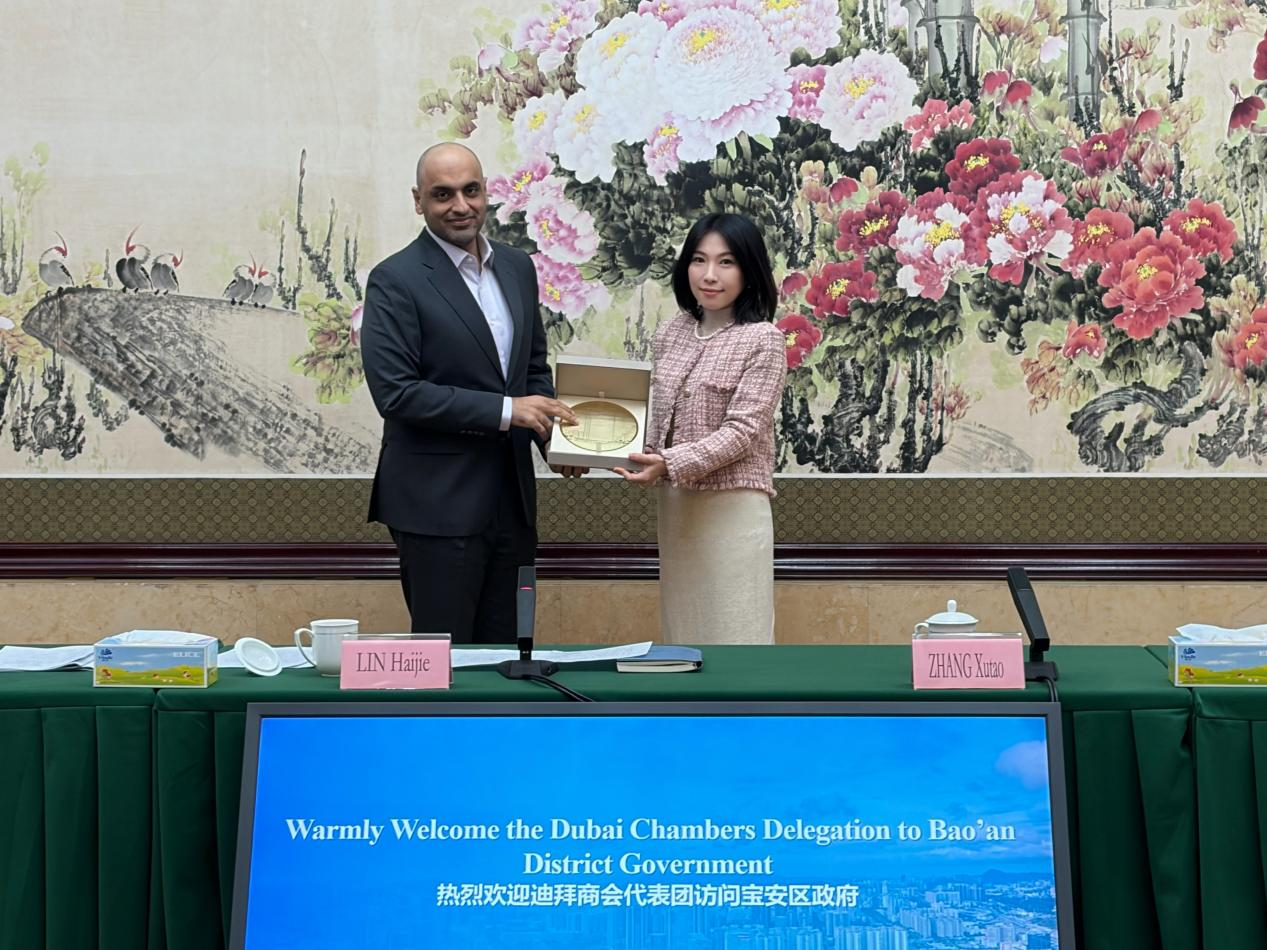 活动最后,双方交换礼物并合影留念,为此次交流画上圆满句号。此次迪拜商会代表团到访,拉开了宝安新年深化国际经贸合作的序幕。接下来,宝安将持续发挥区位、产业、政策优势,搭建更多国际交流平台,推动辖区企业与迪拜在更多领域开展务实合作,实现双向奔赴、共赢发展。