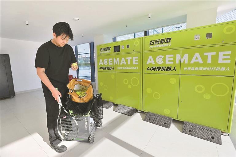 为方便市民使用AI网球机器人,宝安超网中心将配套推出由卧安机器人公司研发的全球首款AI网球机器人共享柜。预计本月底在宝安网球中心正式投入使用。市民只需扫码完成身份认证与费用支付,即可在场地现场租用专业训练设备,在公共网球场中实现“即到即练”,有效降低专业训练门槛,提升公共场地使用效率。
