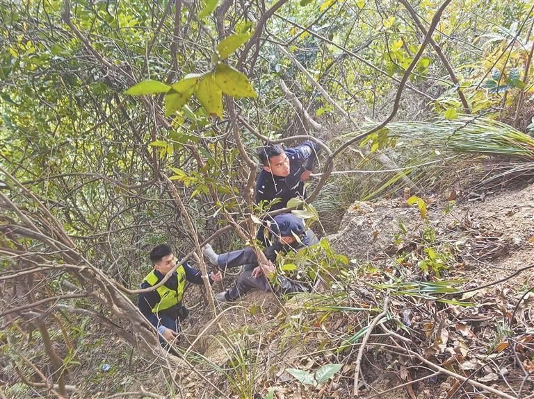 警方找到了正蜷缩在阳台山大围肚悬崖边上的走失老人。