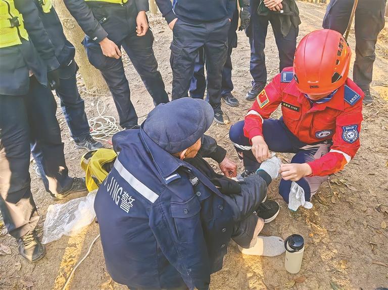 现场警力小心将老人背至安全地带,并联系120将其送往医院治疗。