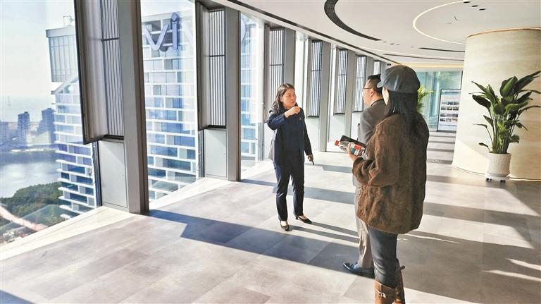 当天活动在湾区产业投资大厦启幕,作为宝安与前海核心区的甲级写字楼标杆,这里坐拥一线海岸线视野,4层地下车库提供420个车位,更能叠加两地政策优惠,成为人工智能、空天产业等战略性新兴领域企业的理想之选。企业代表们跟随指引,通过宣传片、空间展示、实地走访办公区域的全流程体验,直观感受高阶商务配置的独特优势。