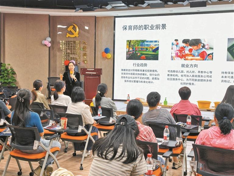 比如,在民治街道大岭社区就业驿站,针对宝妈群体时间零散、技能不足的就业难题,社区打造“培训+孵化+变现”一站式宝妈直播间,采用“1+N”模式,前期招募50位宝妈进行直播运营、营销话术等系统培训,实训后精简至20人,目前6位优秀宝妈已具备直播能力,开启居家灵活就业。