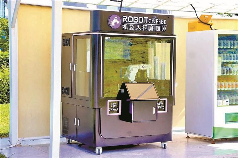 在深圳北站中心公园,市民可以亲身操作AI咖啡机。