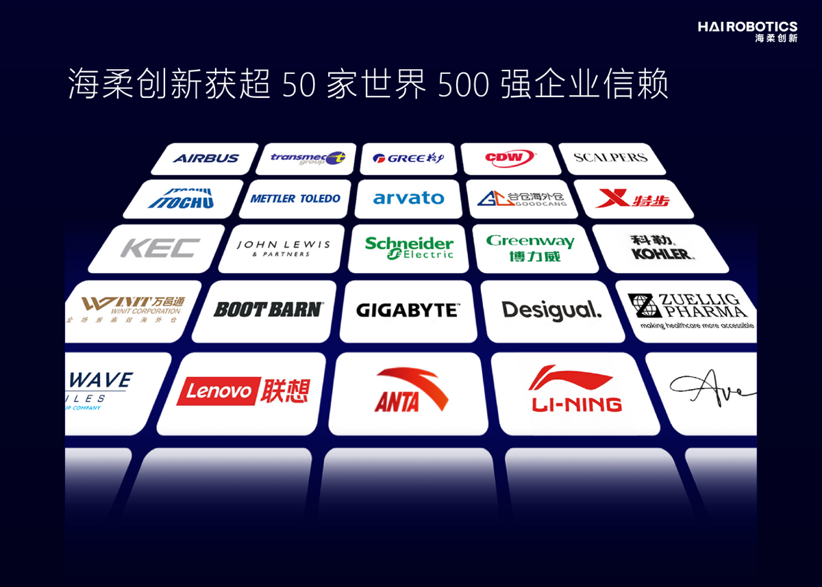 在智能制造领域,海柔的方案帮助西门子工厂实现了从仓库到生产线全程无人化的物料配送,并为联想柔性产线提供精准及时的物料供应,有力支撑了 “0.6秒下线一台手机” 的高节拍生产。海柔的技术应用已横跨鞋服、第三方物流、零售电商、制造业等多个行业,服务了包括科勒、万邑通、Boot Barn等在内的众多头部企业。据统计,海柔已获得超50家世界500强企业的信赖。