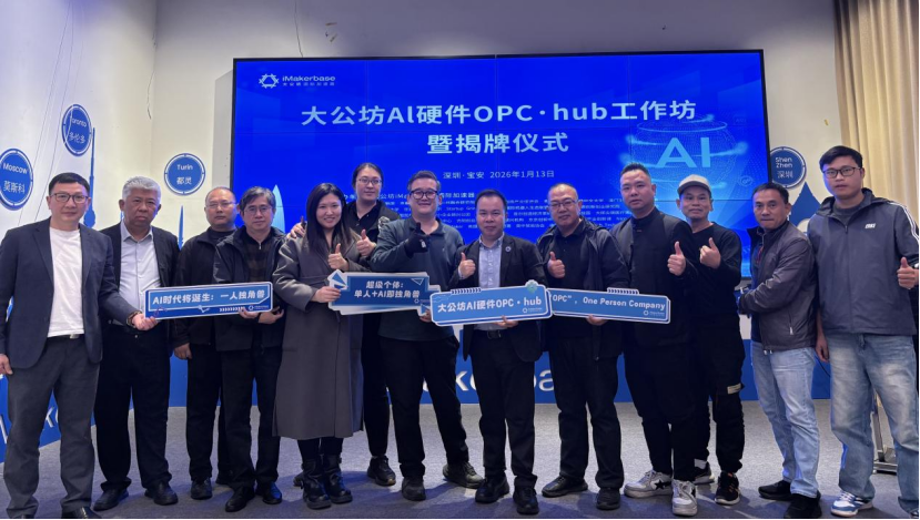 1人牵头,0成本启动,自己做老板,AI便是全能团队,如今这样颠覆式的创业模式已在宝安实现。1月13日,“大公坊AI硬件OPC・hub工作坊暨揭牌仪式”在宝安大公坊iMakerbase国际加速器举行,正式宣告全球首个聚焦AI硬件领域的OPC(One Person Company,一人公司)成立,标志着以“单人+AI即公司”为核心的新型创业范式在深圳率先落地,为粤港澳大湾区打造国际科创中心注入强劲动能。