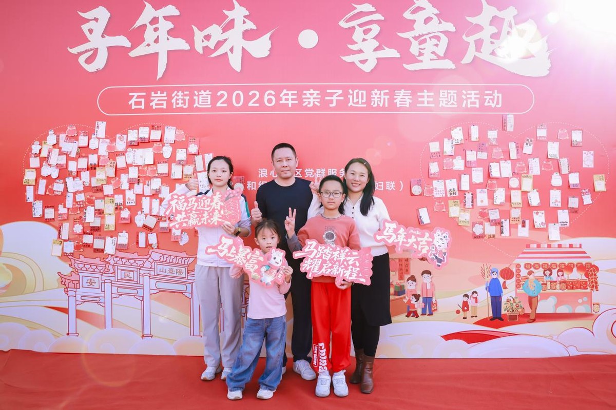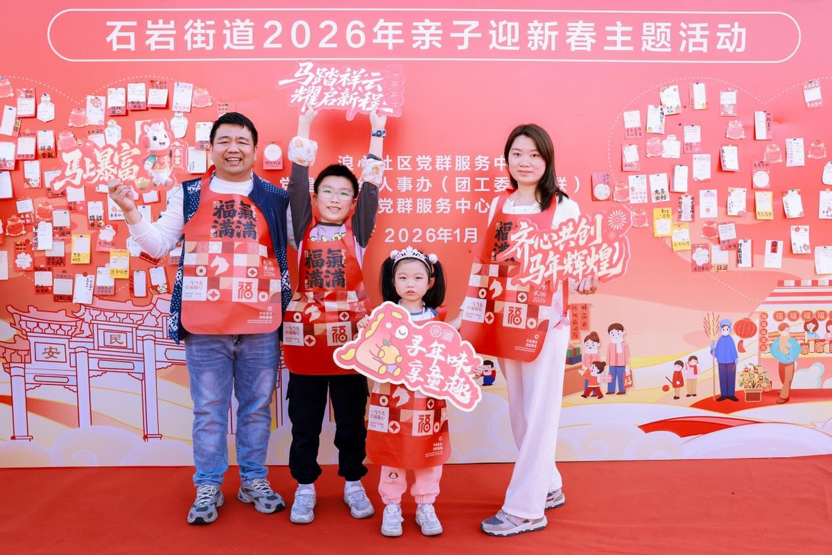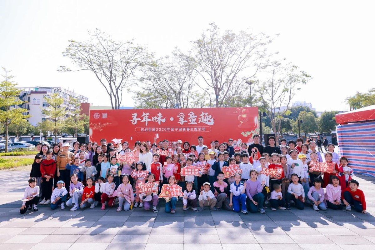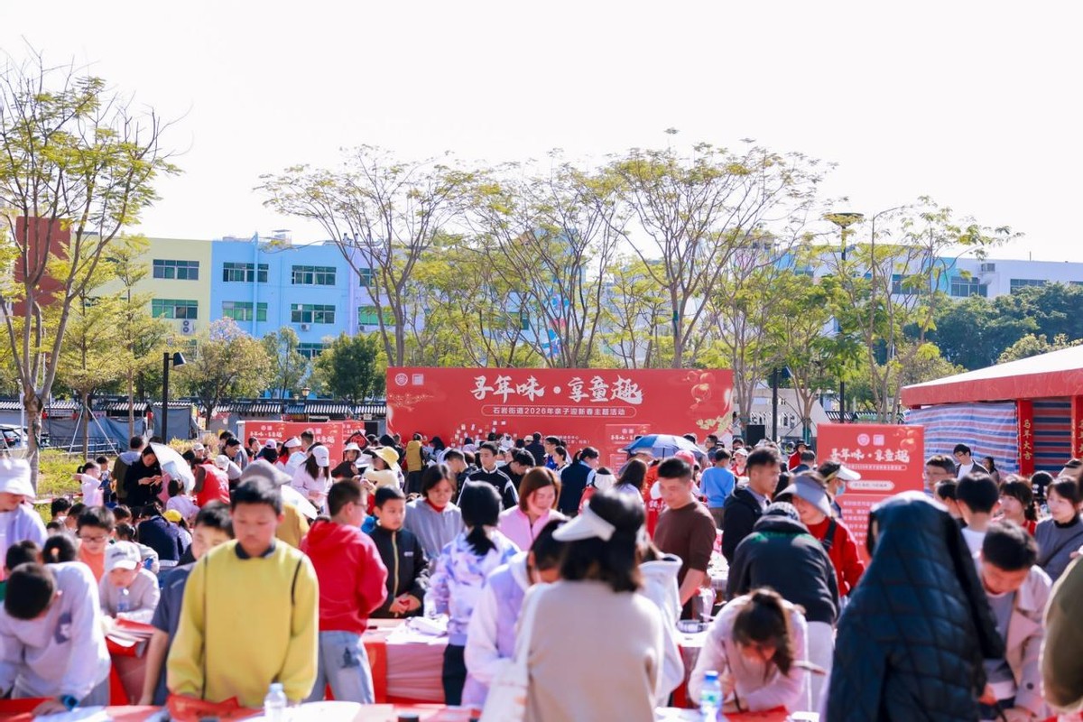 1月25日下午,石岩街道在繁花食井广场开展“寻年味,享童趣”2026年亲子迎新春主题活动,吸引了辖区近200组亲子家庭踊跃参与,现场气氛热烈,年味浓郁。
