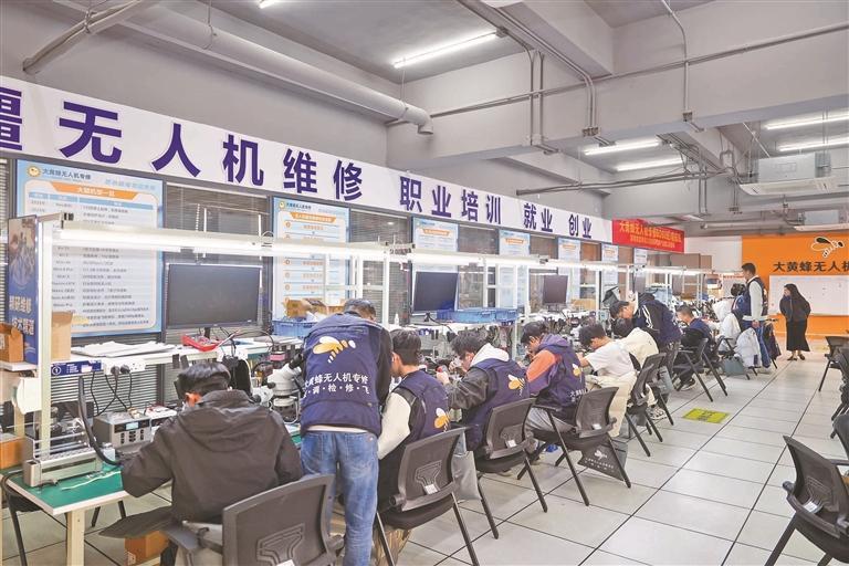 “低空经济涉及各行各业,普通人进入这个领域,最好的起点就是了解无人机,而维修正是最直接的途径。”李知表示,大黄蜂无人机专修的定位不仅是培养维修人才,更是为低空经济领域输送复合型人才。学员通过维修学习,既能掌握核心技术,又能积累行业资源,未来可从事配件销售、青少年培训、农业植保、无人机表演等多个领域的工作,真正实现“一技在手,多路可走”。