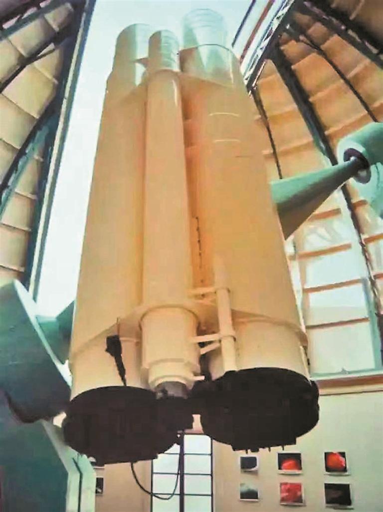 ▲发现“深圳星”的紫金山天文台40厘米口径双筒望远镜。