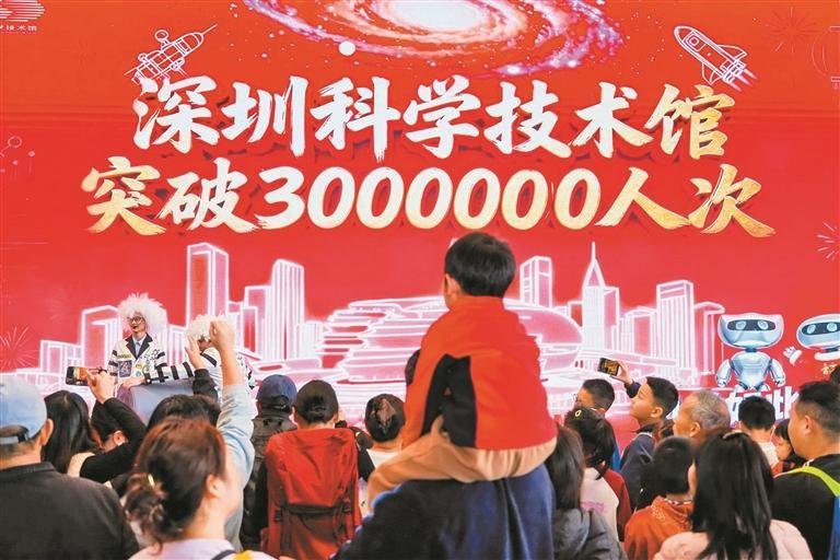 深圳科技馆馆长郑永春介绍,场馆2025年5月1日正式开馆,仅用5个月就实现200万参观人次,创造了科技馆行业的“深圳速度”;如今再破300万大关,场馆将从“新”和“心”双向发力,优化服务与科普效果,让孩子们“空着手来,满载而归”,让青少年在探索中收获成长。