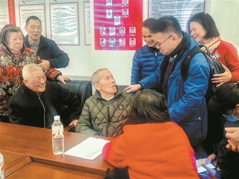 从“坂田”缩小至“马蹄山村”,从模糊的“刘姓”辨明为“黄姓”,在多方合力下,线索如拼图般逐渐完整。马蹄山村股份合作公司董事长黄志尚依据族谱记载与老一辈村民的口述历史,反复比对信息,最终找到了关键人物——陈母在逃难中失散的两个弟弟,如今已是耄耋之年的黄氏兄弟。