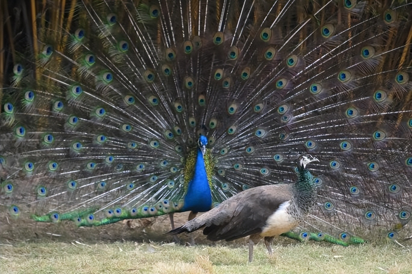 动物园孔雀园里,雄孔雀为求得雌孔雀的“芳心”,频繁开屏,尽情地展示其艳丽的尾屏,并抖动尾屏发出“沙沙”的声音,就像自带优美的音乐,还不停展现曼妙的舞姿。