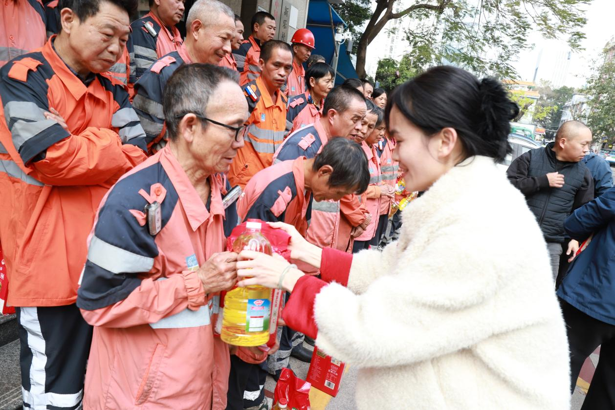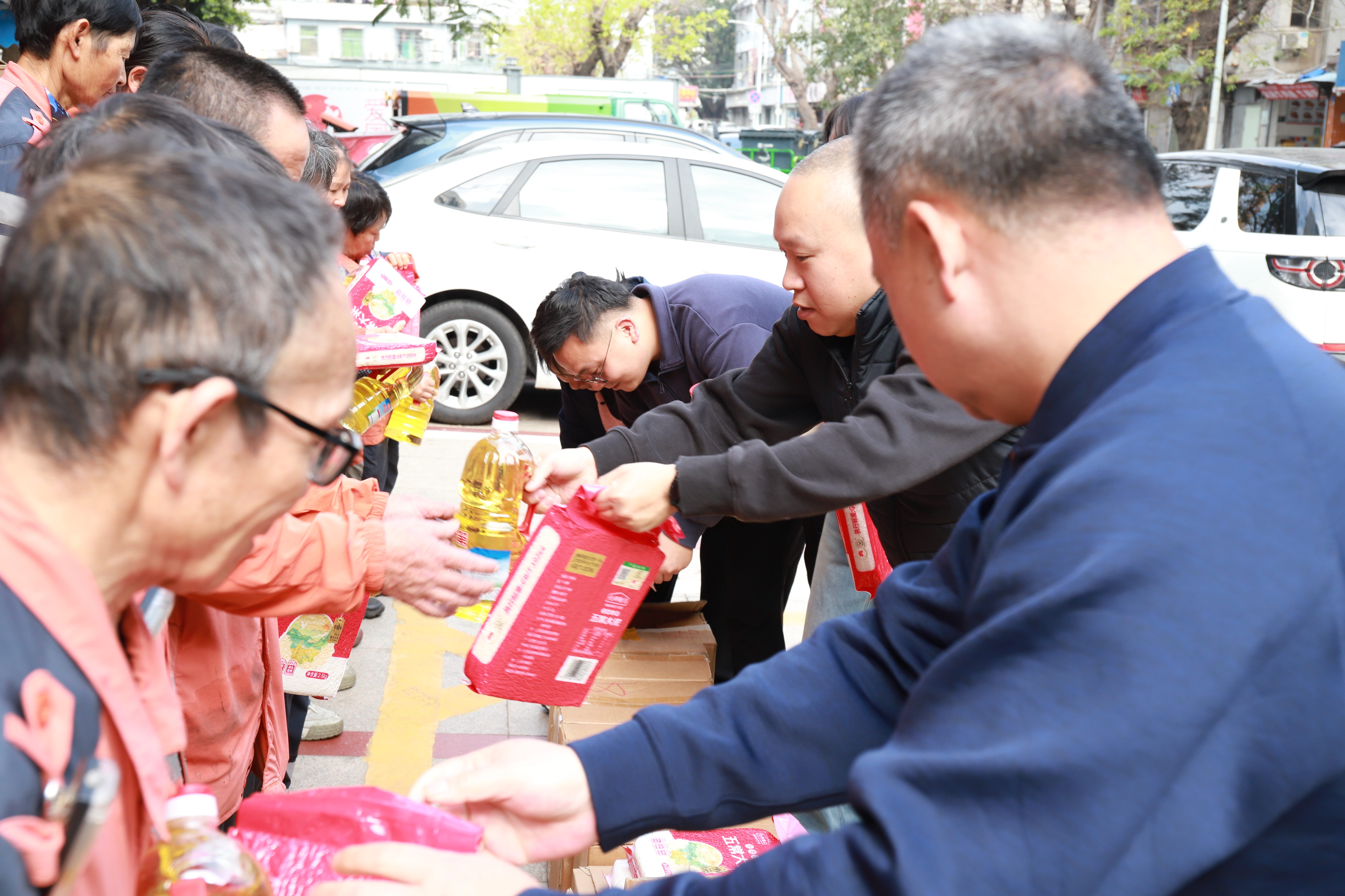 新春佳节临近,年味愈发浓厚。近日,新安街道新乐社区党委联合社区工联会开展暖心慰问活动,为坚守一线、留深过年的环卫工人们送上新年关怀与诚挚祝福。社区精心准备了大米、食用油等生活必需品,向这群“城市美容师”致以衷心感谢,让他们在异乡也能真切感受到家的温暖。