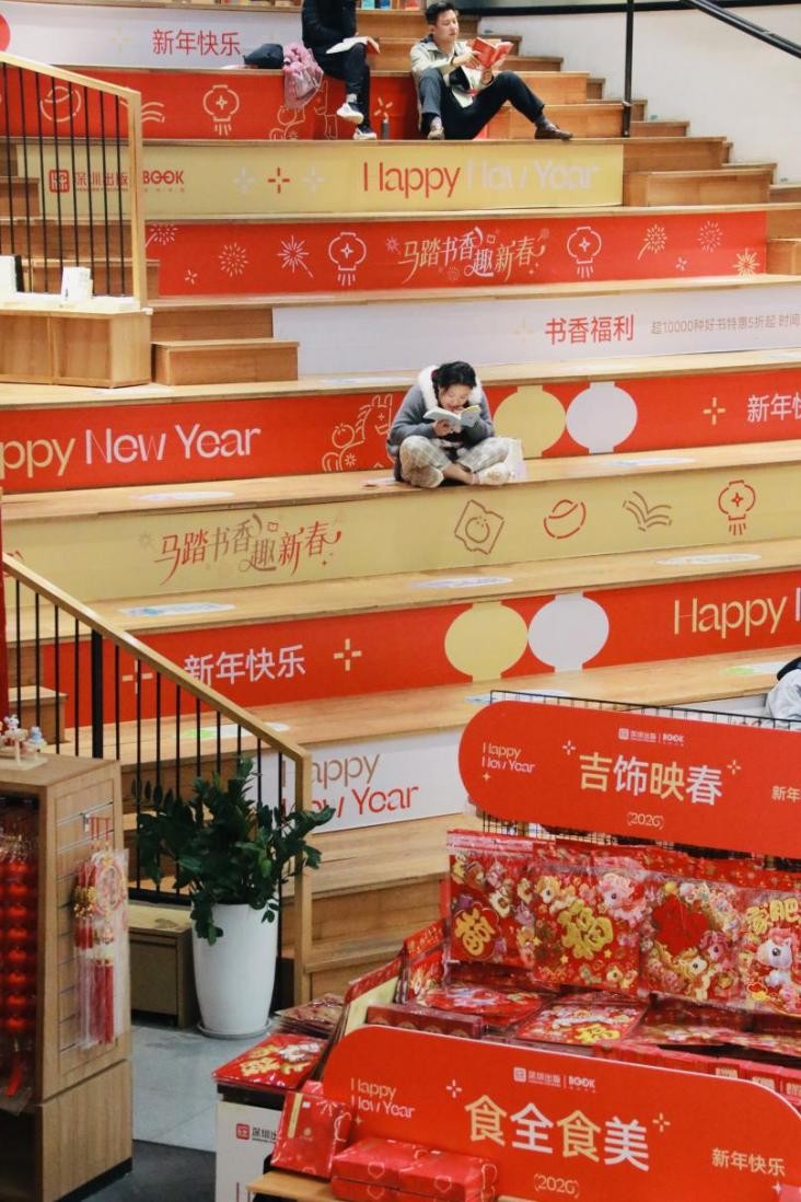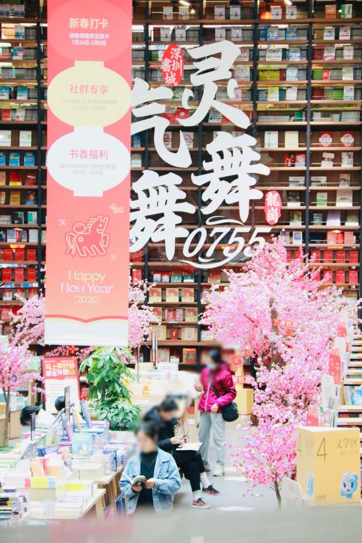 2月8日至3月3日,深圳书城龙岗城则化身“新春桃源”,通天书墙下两棵仿真桃花树相映成趣,木质长椅搭配书香祈福签,“桃林小径”串联起网红打卡路牌,随手一拍都是氛围感满满的新春大片。消费满99元即可兑换拍立得限定照片,解锁专属新春边框,凭照片至书吧还能享受6折饮品福利,让书香与茶香共同定格团圆记忆。
