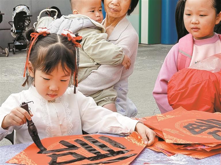 日前,在光明区文化馆C座培训中心一楼,十几位书画爱好者正专注地挥毫泼墨,一个个遒劲有力的“福”字跃然纸上。现场留深守岗的城市建设者和周边居民接过这份手写的祝福,脸上洋溢着笑容。令人意想不到的是,这些为市民写福送福的书画队成员,上一年春节也还只是站在一旁围观的市民。