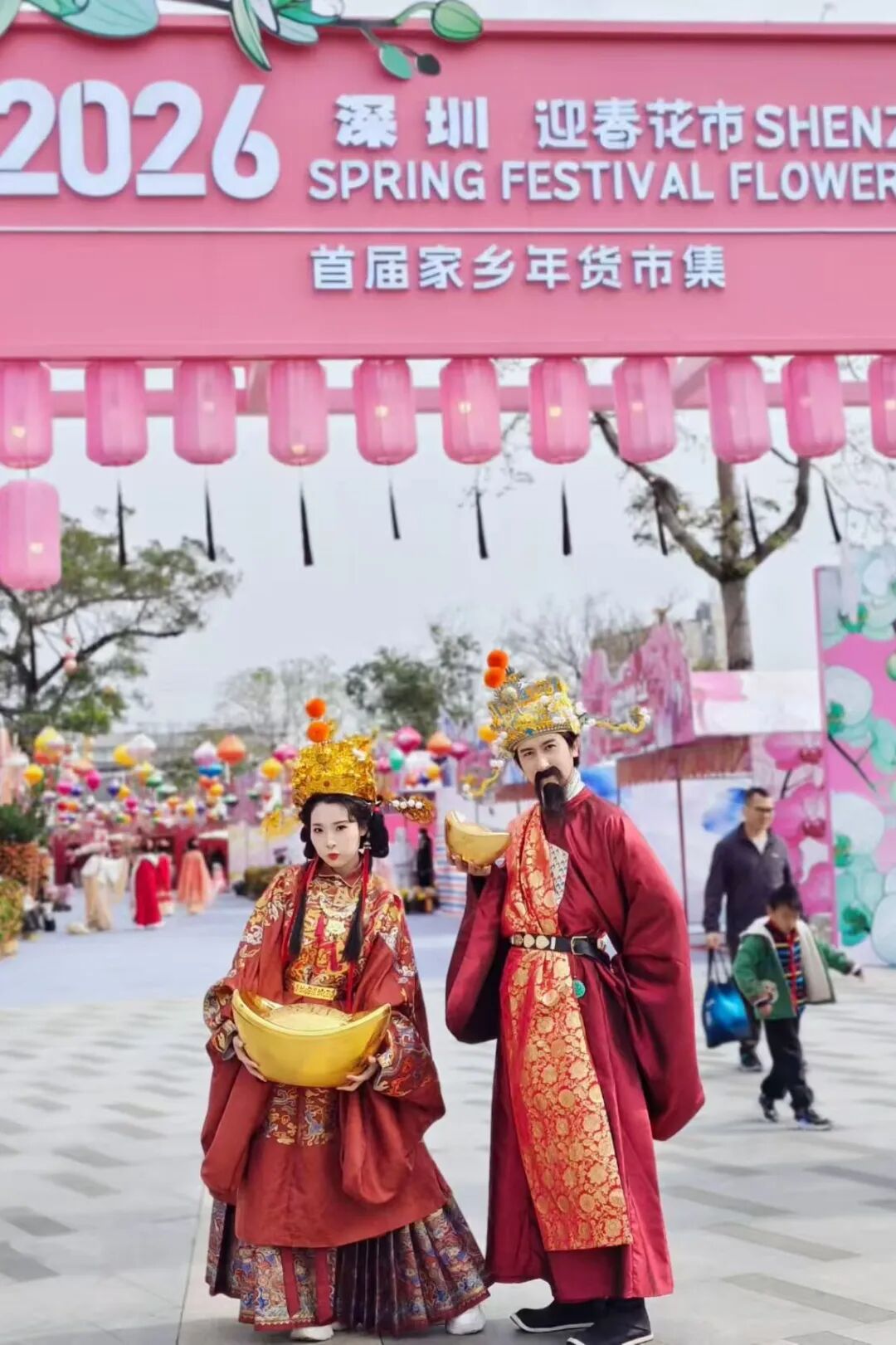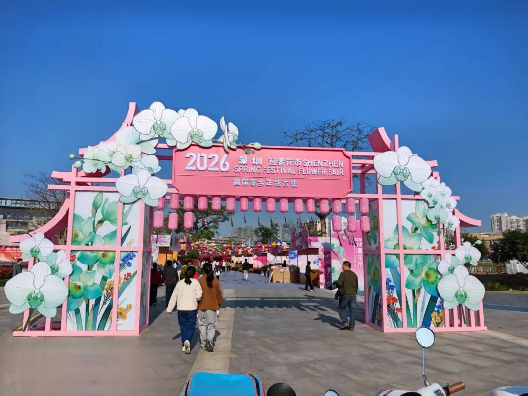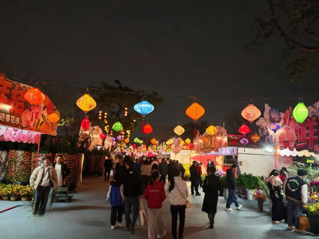 2026年沙井蚝乡湖公园迎春花市时间从1月30日持续至2月15日,年花、年货、美食、非遗表演一站式配齐。