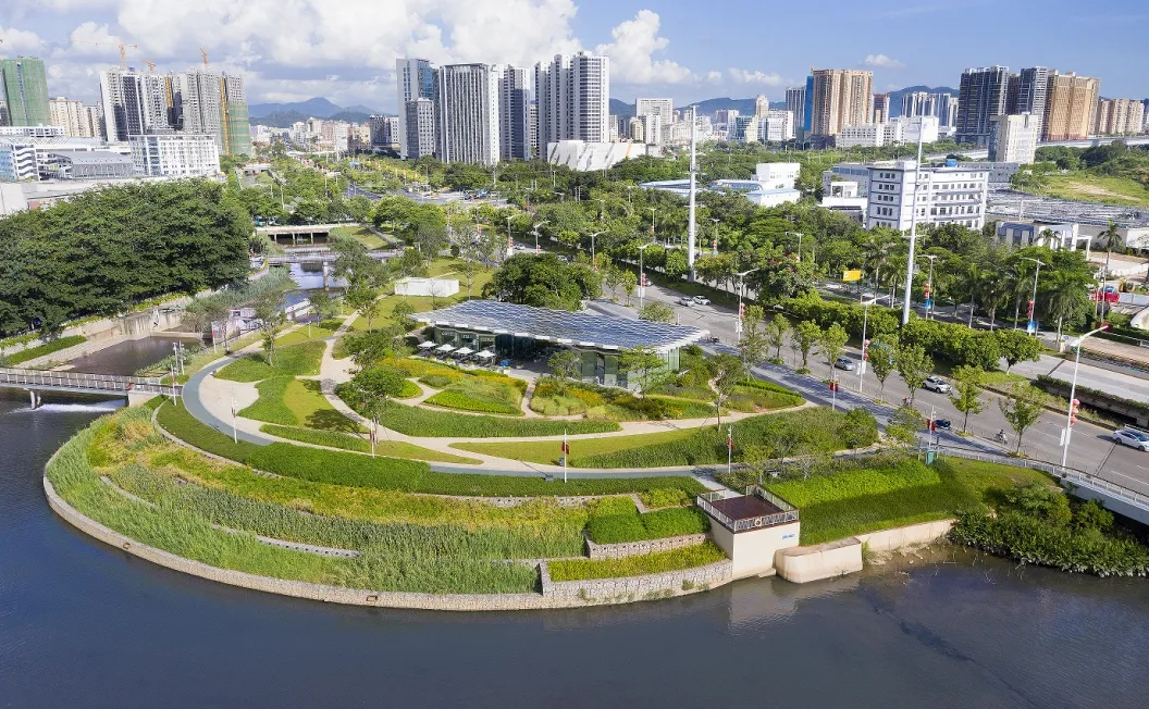 是一座以蚝壳为原型设计的360度亲水公园