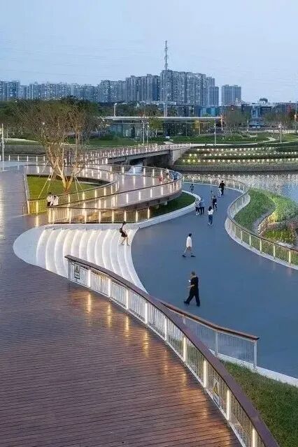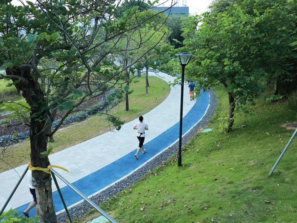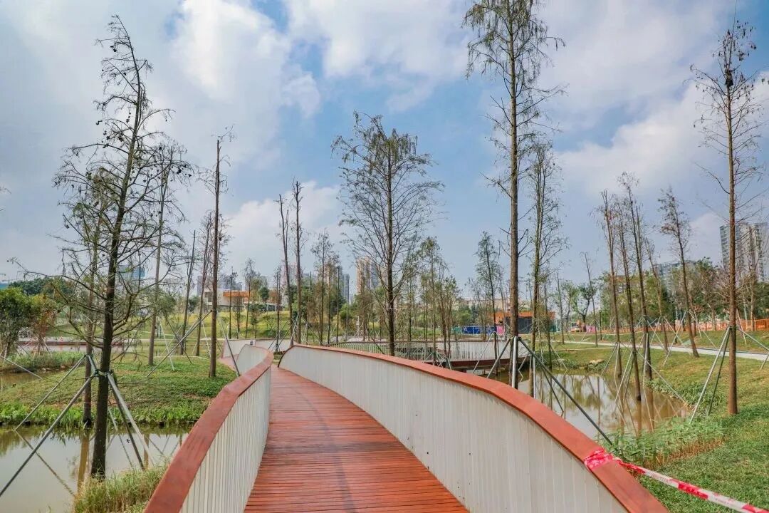 沿着公园的栈道一路走走停停