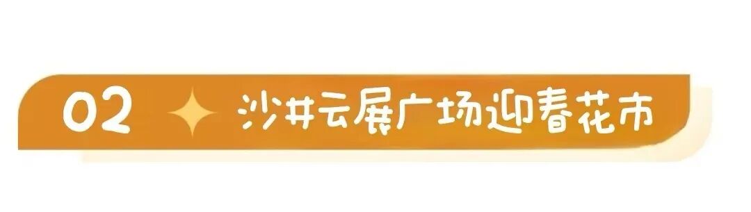 2026年沙井云展广场迎春花市时间从2月6日持续至2月16日(上午10点至晚上23点),包含迎春花市活动、亲子手工、古风摄影等丰富活动。