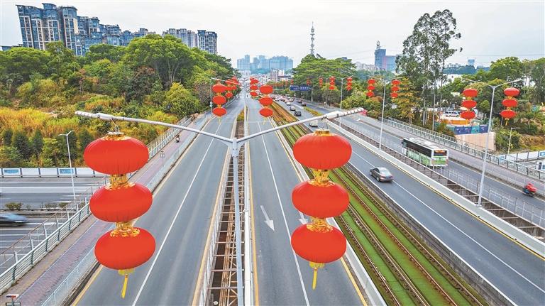 ▲龙华大道等多条主次干道与重要交通节点已挂上灯笼。
