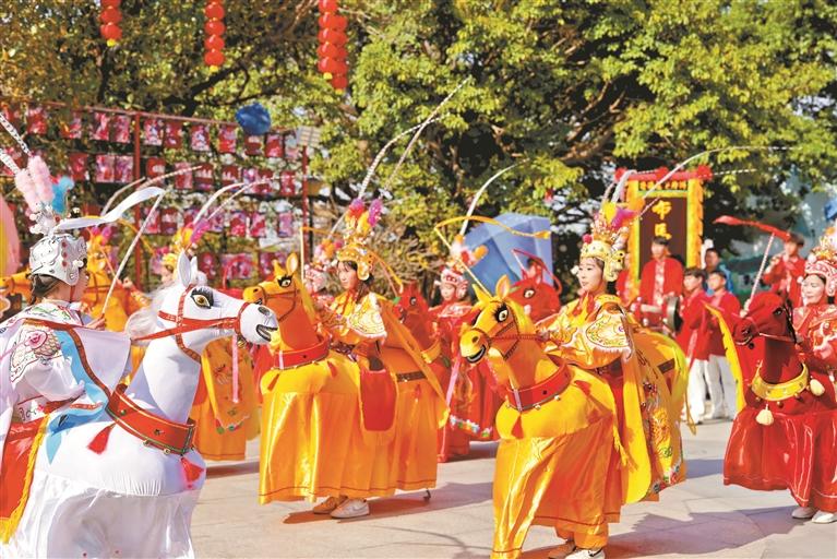 本次文化节将隆重呈现广东省级非物质文化遗产——饶平布马舞。这项源于宋末元初、传承七百余年的民间艺术,将于马年新春焕发时代新彩。伴随着气势恢宏的潮州大锣鼓,彩衣舞者将策“马”奔腾,沿奶牛广场经七彩乐园巡游至青青草原,绘就一幅流动的民俗画卷。游客既可观赏经典剧目《穆桂英挂帅》的飒爽英姿,亦可亲身体验布马互动,更有真马同游,共庆吉祥马年。