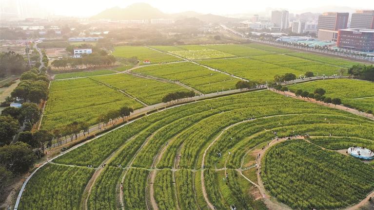 作为深圳春日极具人气与标志性的景观之一,光明欢乐田园的油菜花海每年都吸引无数家庭和摄影爱好者前来打卡。今年,这片广袤花田已准备就绪,40万平方米的油菜花即将再次在广阔的大田与缓坡之上铺展开一片金黄花海。目前部分花海已陆续绽放,不少游客已抢先打卡留影,微风拂过,花瓣缀满阳光暖意,金色花海与光明科学城遥相呼应,田园的诗意柔美与现代都市碰撞交融,生动诠释“田园里的科学城”的独特魅力。景区还契合新春节庆精心增设了主题置景,朱红灯笼和新春寄语点缀花海,艺术打卡装置错落于花海间,将浓郁的新春氛围巧妙融入烂漫春景之中。