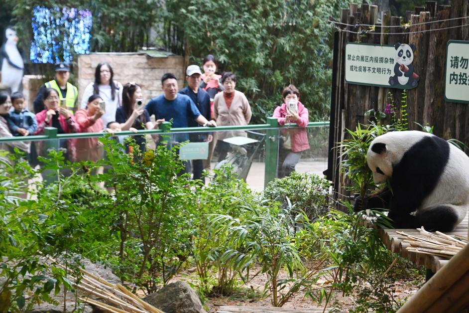 熊猫庄园里,大熊猫活泼玩耍,吸引一波又一波游客驻足观赏。“孩子特别喜欢大熊猫,趁着春节假期,和家人一起来动物园游玩,共享假期欢乐时光。”游客方女士说。