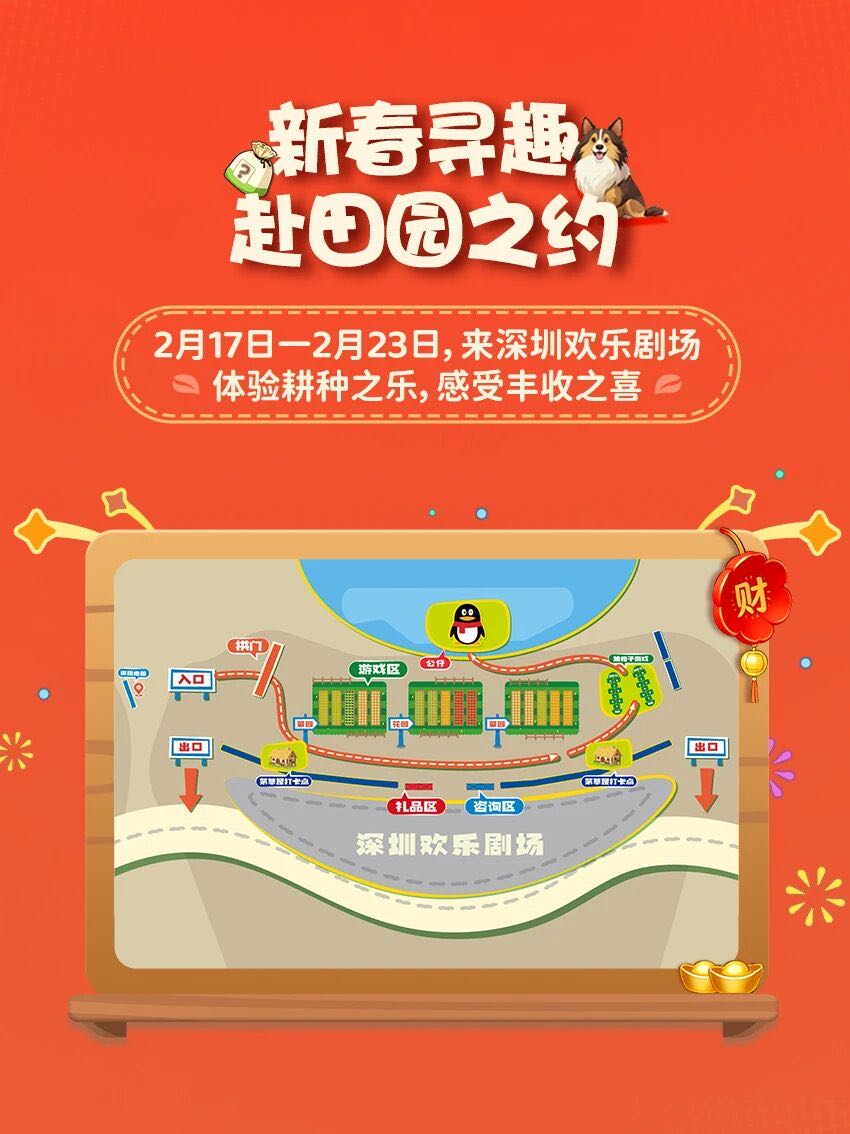 2026年2月17日大年初一,位于深圳的湾区文化新地标——欢乐剧场迎来一场别开生面的“换装”。经典网络IP《QQ经典农场》跨越屏幕惊艳亮相,为期七天的新春限定活动正式拉开序幕。本次活动并非简单的场景复刻,旨在为市民与游客打造一场联结童年记忆与新春愿景的浪漫重逢。