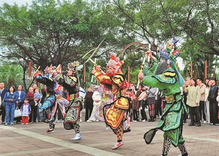 春节期间,观澜湖生态运动公社非遗英歌舞表演每日上演。