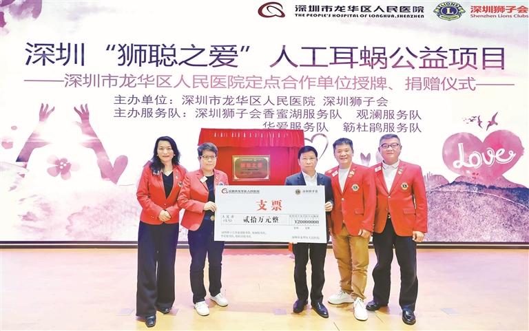 ▲深圳市龙华区人民医院联合慈善组织启动“狮聪之爱”人工耳蜗公益项目。