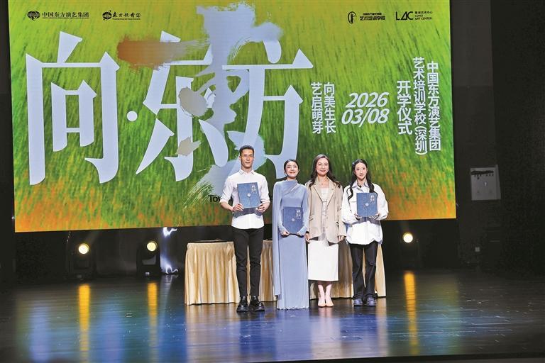 3月8日,中国东方演艺集团艺术培训学校(深圳)分校2026春季开学仪式在鹭湖艺术中心隆重举行。本次开学仪式以“向·东方——艺启萌芽 向美生长”为主题,区委常委、宣传部部长黄立敏,区政府党组成员、副区长赵妍妍出席活动,共同见证龙华美育迎来国家级艺术资源赋能新契机。